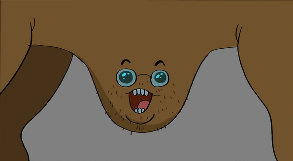 PHIL FACE on Mrs. Cow's udder in "Storytelling."